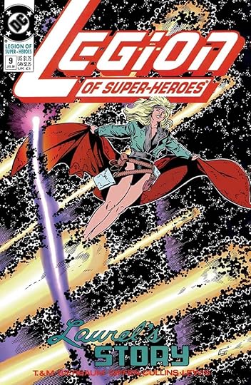 In 1989, DC launched a revamp of the characters that began far from previous stories, but slowly headed back to familiar territory. After some shocked reactions, it became just as popular as past Legion books, and lasted 127 issues until 2000. Gaspar only lettered a few early covers, this is the first, and it uses charming script for LAUREL’S.