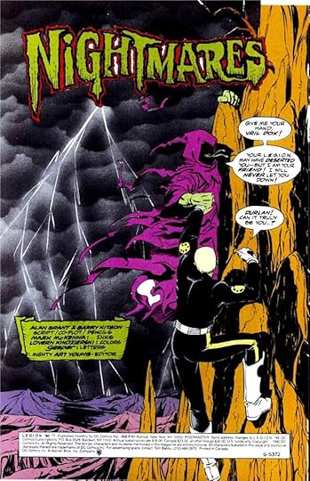 Great scary title on this splash page, though the colorist (or separator) has missed the openings between some letters that should have been gray or black.