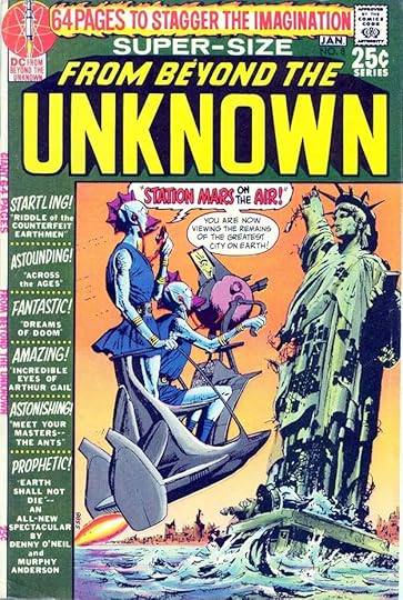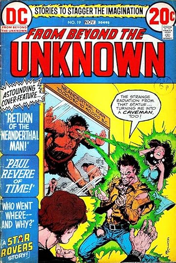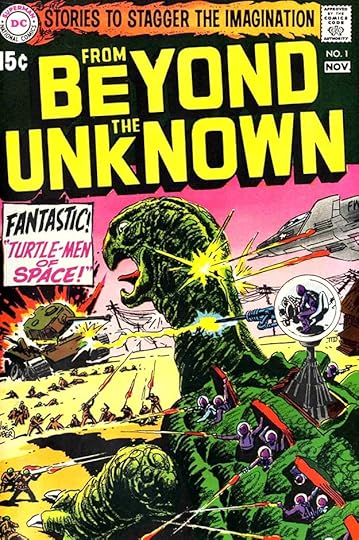 This title was created to reprint stories from the DC science fiction titles MYSTERY IN SPACE and STRANGE ADVENTURES, each of which had run for over ten years as anthologies from the early 1950s to the early 1960s under editor Julius Schwartz. The covers were the only new thing, and many were lettered by Gaspar Saladino. I think the top line, which was also on later issues, is headline type. The caption is by Gaspar. The caption layout has too much extra white space, something Saladino was still working to perfect.