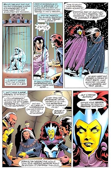 More creative style choices by Saladino on this cover, and icy letters in the word balloon.