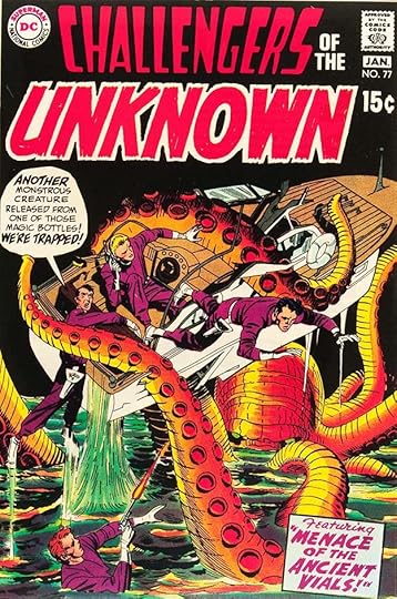 To sum up, I found Gaspar Saladino lettering on these CHALLENGERS OF THE UNKNOWN covers: 36, 39, 45, 53-54, 57, 62-77, 80, 86-87, that’s 25 in all. He also lettered the stories below: