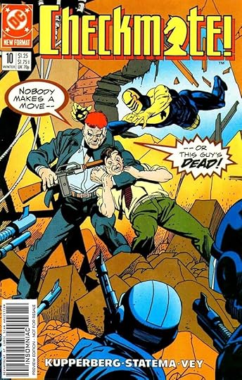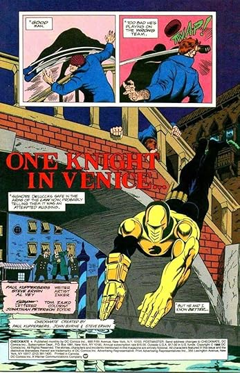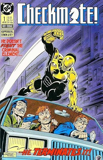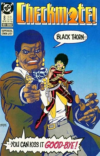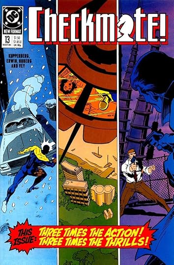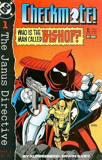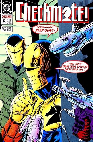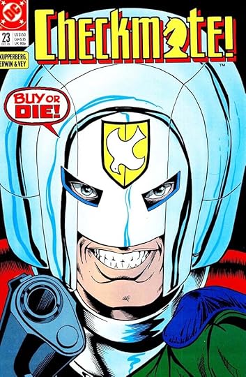 This title with a logo by me combining spy and superhero genres from writer Paul Kupperberg, artist Steve Erwin and others had a successful run of 33 issues from 1988 to 1991. Gaspar Saladino lettered some of the covers and also some of the stories, sharing those duties with others, but making a significant contribution in both areas. His lettering on this first cover adds excitement through his distinctive styles that I think are so much better than the type treatments DC was turning to more often around this time. I particularly like the bounce of TERMINATES here.