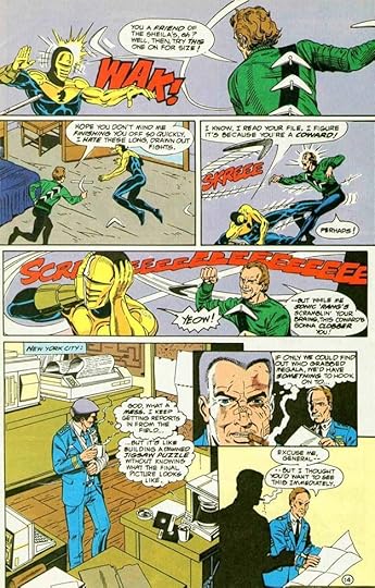 Another use for this book was to cross-promote licensed characters who were getting their own miniseries at DC, as with this one. It made for strange combinations. I love the treatment of DIE in the second thought balloon. That’s a powerful thought!
