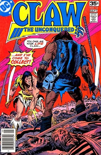 These two titles are grouped to create an article of the right length, they have no other connection. CLAW was clearly DC’s attempt to mimic Marvel’s success with Conan, but it did not do as well. It ran to twelve issues, but with a year and a half break between issues 9 and 10. Saladino did not letter any of the stories, but he did letter half the covers. The top line and round blurb on this cover are type, but the beautiful scroll caption with Art Deco-influenced lettering is by Gaspar. It’s a textbook example of making the important words stand out. The logo is by Saladino from a layout by Jim Steranko.