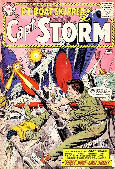 [image error]From CAPT. STORM #2, July-Aug 1964Saladino’s sound effects were often large and exciting, as on this page.