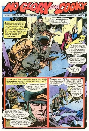 I love the large logo and titles on this story, again full of character and interest. All the creators listed had been instrumental in the success of DC’s war comics in the early 1950s, and it’s nice to see them reunited here, and credited by name, as they were not back then.