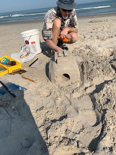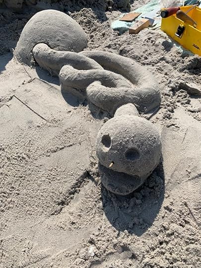After missing last year, my friend Tim and I spent two days at the beach near my home in southern New Jersey, and continued our long tradition of sand sculptures. They were smaller and somewhat less inspired than in the past. As Tim said, “Our best ones are behind us.” I thought I would document them here all the same. This is Tim’s creation imitating some of the ideas of master sand sculptor Calvin Seibert, a favorite of ours.