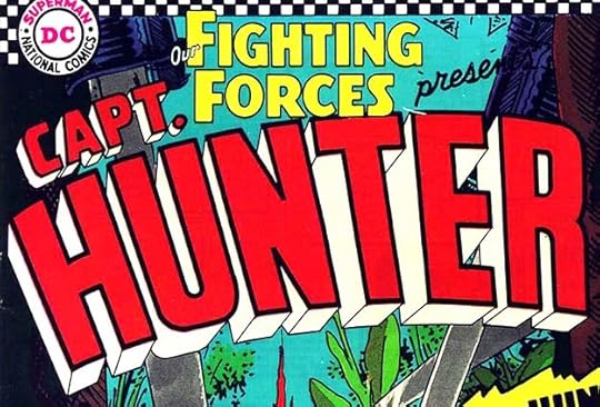 This Saladino logo follows the general plan of his CAPT. HUNTER logo from OUR FIGHTING FORCES #102, but with a double outline around the main word rather than telescoping. It replaced one of Ira Schnapp’s final logos for the same feature. The cat art is by Joe Kubert. Both Ira and Gaspar thought block letters were a good idea on war logos, and one by each of them is seen here.