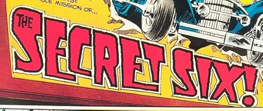 In an odd sort of team-up, Ira Schnapp and Gaspar Saladino each did logos for this new series that appeared together on the cover. Ira’s was at the top but relatively small. The cover was also the first page of the story, and this logo by Gaspar was in the first panel. It might be considered simply a story title, but it was also used as a story logo on at least one other issue, and it was clearly created with care and intended for reuse if wanted. Again, Gaspar is exploring new styles using rough outlines, but this time on more angular letters that are heavier at the top, sort of like art deco, but in fact unique to Gaspar, with letters of different sizes that are stacked at the bottom in two places. The exclamation mark adds excitement, but the logo as a whole is already full of energy. What reader wouldn’t want to know more about these six and their secret? By comparison, Ira’s logo is sedate, though actually innovative for him because of the clever use of brick patterns: