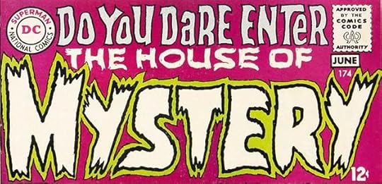Editor Joe Orlando was charged with returning some of DC’s “mystery” titles to their scary origins, and Gaspar Saladino’s logos were a big help. This one follows the same general style as THE CREEPER, but with thicker and somewhat more square letter shapes, at least in places. The double outline leaves room for a second color to help MYSTERY read well, while THE HOUSE OF seems to be in a dry-brush style with a few small gaps in it, something Gaspar would develop more later. I don’t like the top line so much, but it was not a permanent part of the logo.