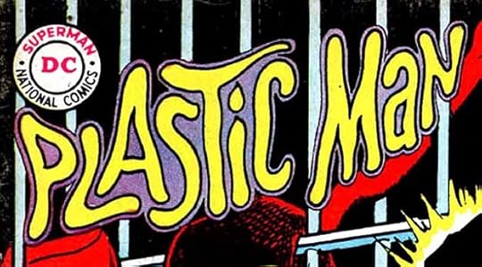 Ira Schnapp’s appealing Plastic Man logo was used on all twenty issues of the character’s first DC series except for issue #10, where the art didn’t leave room for it and Gaspar created this version probably when he did the cover lettering. It’s the cover logo, so it still counts in my book. It’s certainly more pliable than Ira’s.
