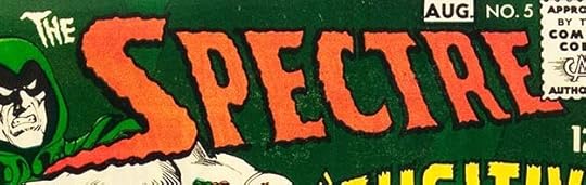 With issue #6, Gaspar and the cover artists (Jerry Grandenetti here) began to experiment with more diverse logos on THE SPECTRE. The letter shapes look like Saladino, but the extended ink lines on the S and E are probably from Grandenetti and inker Murphy Anderson, while any of them could have added the ink dot texture in the letters. This is better than the logo on issue #5, but the best ones are still to come.