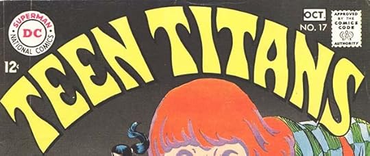 With issue #16, TEEN TITANS left behind the existing Ira Schnapp logo, and for a few issues there were several different ones by Saladino before a final choice for a new logo was made. This logo simply uses standard block letters in perspective to work as a book title. The story title below it, also by Gaspar, is more interesting. In cases where a logo was not at the top, DC felt it necessary to also have the title in type so it would show on a typical newsstand comics rack, which often only showed the top third of a comic or less.