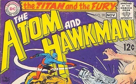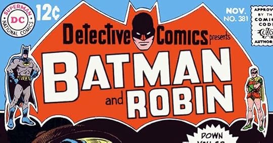 With THE BRAVE AND THE BOLD issue #82, Gaspar replace the long-standing flag banner logo by Ira Schnapp with this very long one running at the top of the cover in a box. It had the advantage of being larger but still leaving more room for character logos, as this title continued to present two or more character team-ups, usually with Batman as one of them. I like the variation of lower and upper case words.