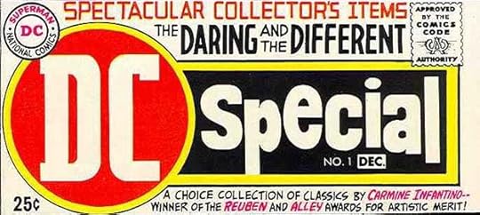 Another example of Gaspar hitting his stride with large, appealing logos. There’s nothing visual about the title, it’s not a character name, and “special” is a pretty bland and overused idea, so Saladino’s ability to make it exciting is impressive. The other lettering by Gaspar around it, full of its own energy and style, helps sell the idea. Comics as “Collector’s Items” was still a new idea, as comics fans were just beginning to gather in conventions and share their finds and knowledge, and the concept of comics industry awards to creators was also pretty new. This cover picks up on all of that. The large DC in a red circle commands attention like a stop light, and Gaspar’s take on those letters is crisp and muscular compared to the one Ira Schnapp did in his DC bullet. You can almost feel new ideas sweeping in.