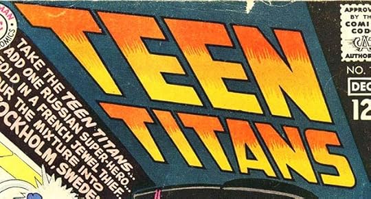 With issue #19, TEEN TITANS arrived at a Saladino logo style that would stay for a while. These are standard slanted block letters made interesting by the lower case i between the two T’s of TITAN. On later issues it was often in a banner.