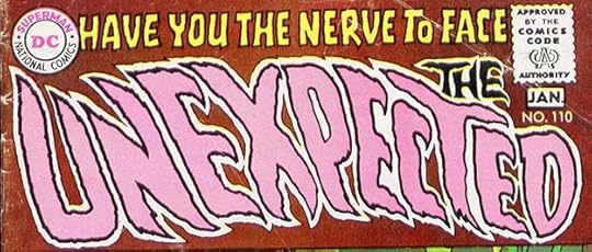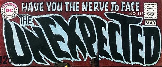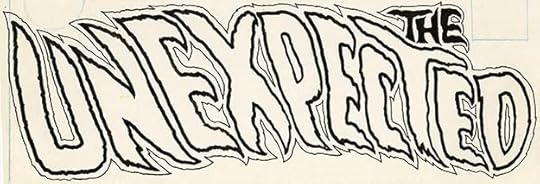 Gaspar returned to his unique horror style for this new UNEXPECTED logo that I love. Two unexpected things about it: THE is at the right side even though it’s read first. Since the reader is led there by the top line, it works; and the letters lean to the left as if being blown by an uncanny wind, enhancing the feeling of motion. These two elements were soon revised, but I like this version the best.