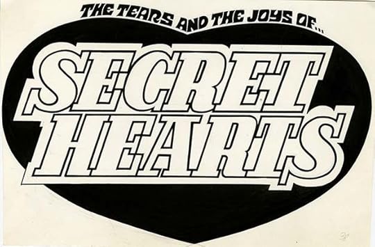 Another similar romance logo from Gaspar, and this time editor Dick Giordano kept the heart shape, the bottom of which could be tucked under figure art. The spacing between and within letters is tight here, but it still reads okay even with such a dark color obscuring the linework. The top line is going for that rock poster look again.