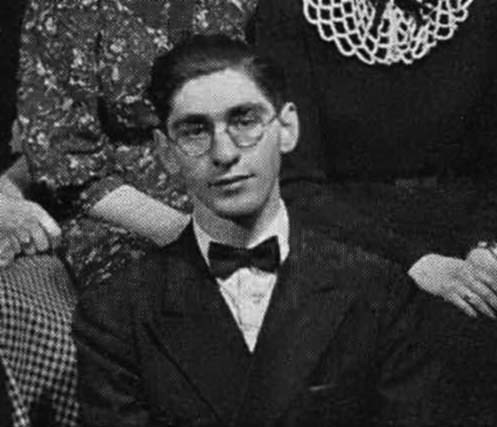 Frank Shuster, Joe’s brother, was about four years younger, born April 29, 1918. I haven’t found out a lot about him, but my friend and fellow comics historian Alex Jay provided some helpful research and I also learned a few things from Brad Ricca’s fine book “Super Boys.” Like Joe, Frank had artistic talent, and did cartoons for his school newspaper, the John Hay Ledger, where he’s listed as Staff Cartoonist and Humor Editor. Frank acted in school plays like “Merton of the Movies,” and he wrote a jokes and humor column for the school paper, so in that way was also like Jerry Siegel, who did the same. In fact, Jerry and Frank tried to launch a mail-order school for humor writing, one of many projects that went nowhere. In October 1940, Frank and Joe were almost the same size and weight, according to their draft cards. Frank was 5 feet 5 inches and 125 pounds. Joe was 5 feet 6 inches and 127 pounds. Brad Ricca says, “Frank was a rebel soul; after graduating high school in 1938, he became a hobo by choice at seventeen and rode the trains for a while, wanting to see more of the country around him. He came back, though, and did some clerical work and was never very far from Joe.”