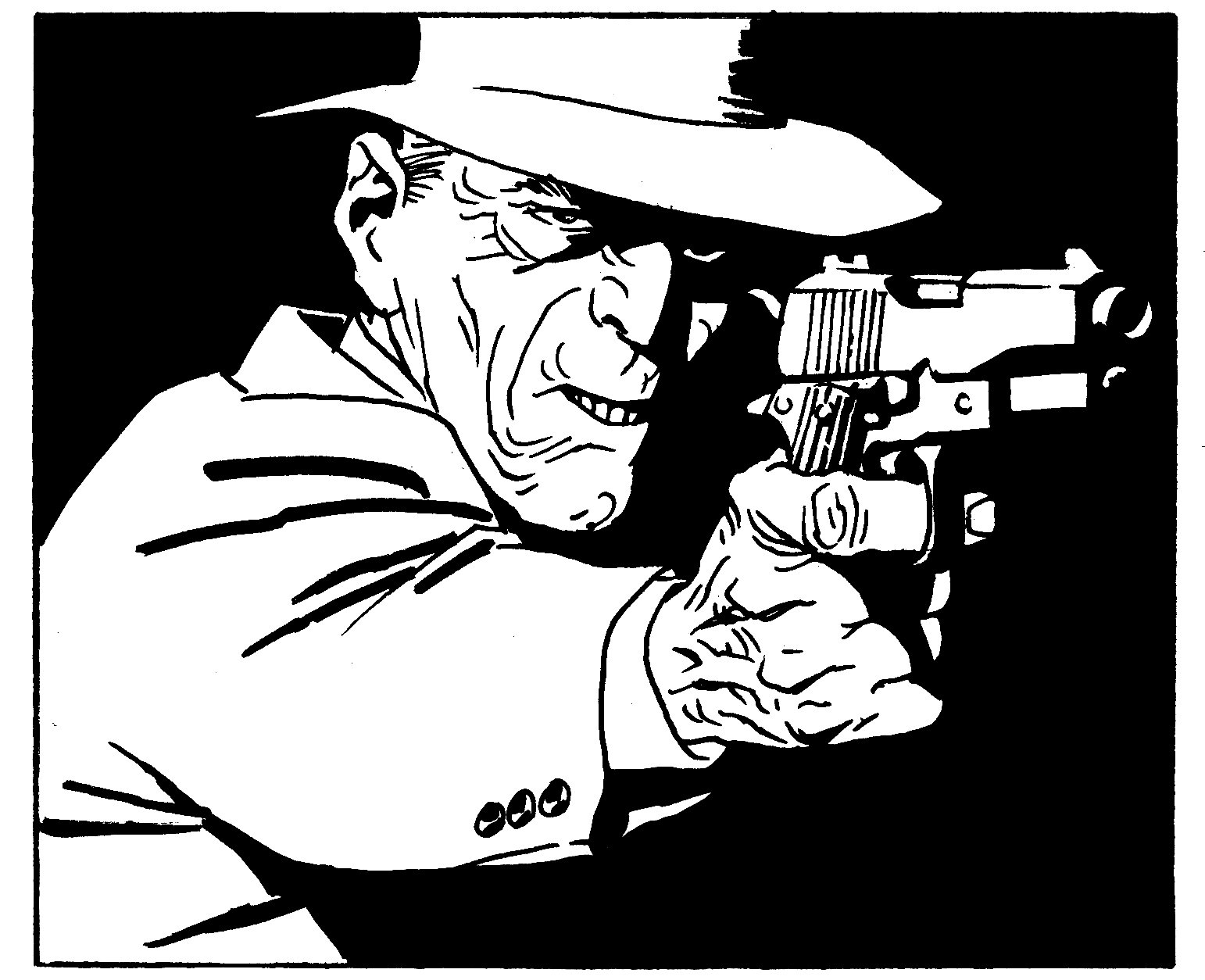 ¿Tu manejo del lenguaje en base a la dilogía y tu distanciamiento de los personajes (no queda títere con cabeza) son influencia de clásicos literarios como Quevedo o Valle Inclán o más de la novela negra más descarnada? Hombre, un poco de todo. A mí, por ejemplo, aparte de Quevedo, me ha marcado mucho Mortadelo y Filemón y José Ortega y Gasset. ¿Cómo nacen Los relatos literarios de Torpedo? ¿En qué se diferencian de las historietas? Salen para ser publicados en varias revistas, una de ellas titulada Thriller. ¿En qué se diferencian de las historietas? En que no necesitaban de los dibujos, aunque Bernet solía hacer un dibujo que ocupaba toda una página para cada una de ellas. ¿Crees que Torpedo es un retrato fiel de la cruda realidad que vivió América esos años? ¿Es un digno hijo de su tiempo? No sé, yo quería contar la historia de un “malo” muy malo, que podía haber vivido en cualquier ciudad o población del planeta. Puede que sea hijo de su tiempo, pero lo que no está claro es que sea digno.