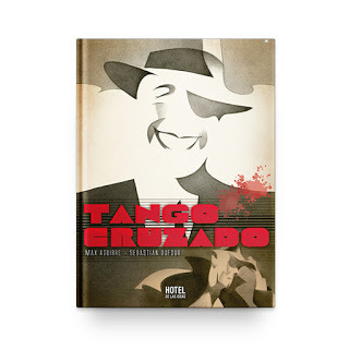 Tango cruzado, de Max Aguirre (guión) y Sebastián Dufour (dibujos). Gardel, su origen, dos orquestas, Buenos Aires, Montevideo, New Orleans, un bandoneonista supraterrenal, todo mezclado en una historia que bucea en el océano de añares que nos separa de aquella primera mitad del siglo XX, brumosa y llena de misterios.