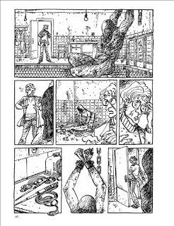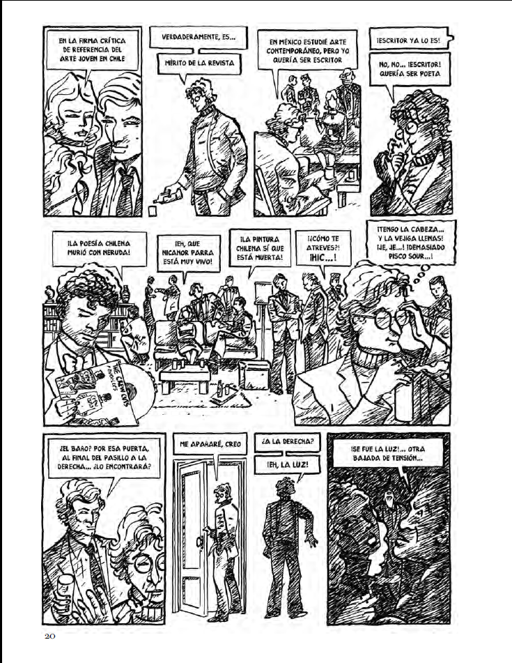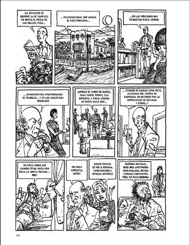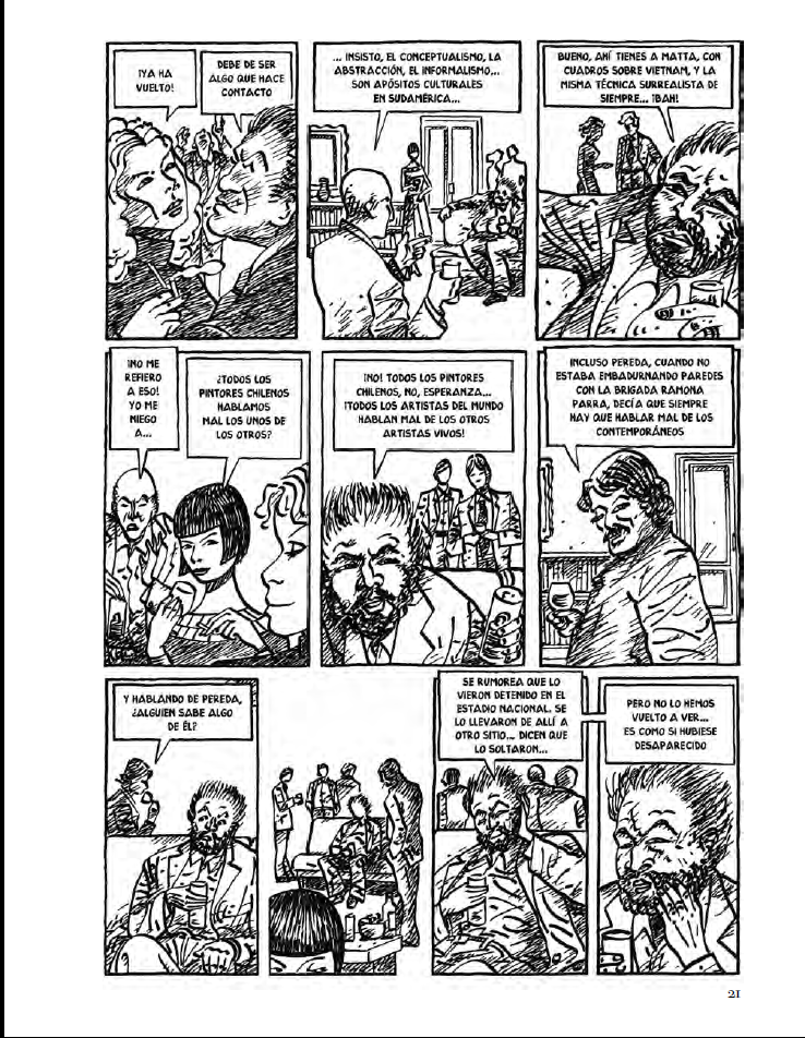 El dibujo en blanco y negro, a su vez, avanza a través de las viñetas en continua transformación sin recalar en un estilo definitivo, acompañando el tono de cada texto, de cada frase, lo cual le confiere a todo el conjunto una sensación de movimiento permanente.