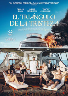 El triángulo de la tristeza. Director: Ruben Östlund. Protagonistas: Harris Dickinson, Charlbi Dean, Dolly de León, Zlatko Burić, Iris Berben, Vicki Berlin, Henrik Dorsin, Jean-Christophe Folly, Amanda Walker, Oliver Ford Davies, Woody Harrelson, Sunnyi Melles y Carolina Gynning, entre otros. Guionista: Ruben Östlund. Imperative Entertainment / Film i Väst / BBC Film / 30West, entre otras. Suecia / Alemania / Francia / Reino Unido / México / Dinamarca / Grecia / Suiza / EE.UU. / Turquía, 2022. Estreno en la Argentina: 23 de febrero de 2023.