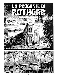 Con este propósito, La progenie di Rothgar retoma al personaje clave de Victoria / Malena Manzi, nieta recuperada cuya peripecia ficticia está basada en la historia real de la familia Bettanin, masacrada por el terrorismo de Estado en la ciudad de Rosario, provincia de Santa Fe. Y la muestra asentada en la Ciudad Autónoma de Buenos Aires, trabajando como abogada para Abuelas de Plaza de Mayo. Por ella, el Dampyr y los lectores nos enteramos de la reaparición del capitán Luis Alberto Prieto, uno de los cuadros represores y torturadores de la ESMA durante los años de plomo y sangre. Aparentemente, Prieto había muerto en un misterioso incidente automovilístico en octubre de 1983, poco después de que el radical Raúl Alfonsín ganara las elecciones presidenciales y refrendara su firme decisión política de llevar a juicio a las Juntas Militares que habían gobernado la República, desde que derrocaran al Gobierno constitucional de Isabel Perón en 1976. Pero si Prieto estaba enterrado, ¿qué hacía caminando por las calles porteñas en 2023, sin haber envejecido un sólo día?