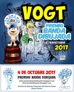 (Información de prensa) Con mucha alegría deseamos anunciar que el maestro Carlos Vogt recibirá en 2017 el Premio Banda Dibujada a la Trayectoria, misma distinción que recibieron en años anteriores Quino, Quique Alcatena, Eduardo Maicas, Oswal y Don Manuel García Ferré. La ceremonia de entrega de la estatuilla será el 4 de octubre de 2017, durante los Premios Banda Dibujada 2017.