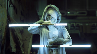 Porque, a diferencia de las anteriores entregas, el protagonismo colectivo de Rogue One recae sobre los hombros de gente ordinaria enfrentada a elementos extraordinarios. Del lado de la Rebelión, esta vez, no hay jedis ni sables láser, sólo seres sufridos, sobrevivientes, habitados por las pérdidas y habituados al sacrificio. Un grupo de descastados con los cojones y la decisión de revertir el curso de la Historia, lanzados en misión suicida a robar los planos de la Estrella de la Muerte que le permitirán a Luke Skywalker hacer estallar el arma genocida sobre el final del Episodio IV.