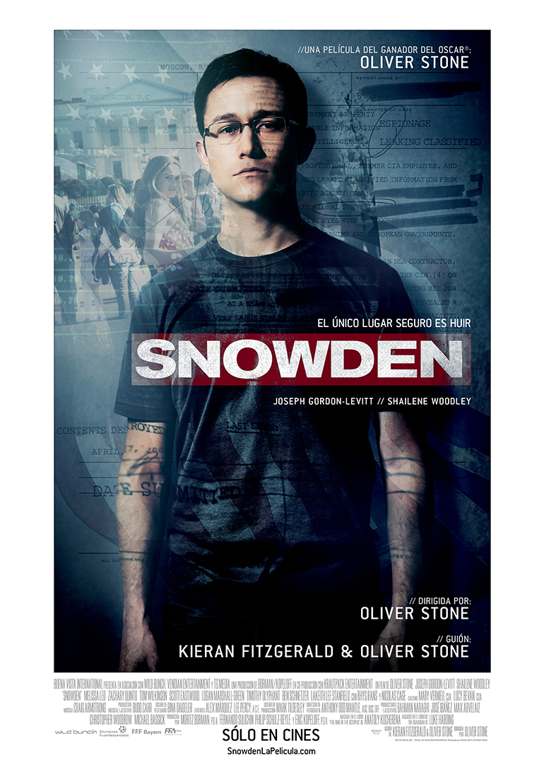 (Información de prensa) El único lugar seguro es huir. Snowden (EE.UU., 2016) se estrena en la Argentina el próximo 8 de diciembre. Dirigida por Oliver Stone, la película está protagonizada por Joseph Gordon-Levitt, Shailene Woodley, Zachary Quinto, Melissa Leo, Tom Wilkinson, Rhys Ifans, Timothy Olyphant, Nicolas Cage, Scott Eastwood y Joely Richardson, entre otros.