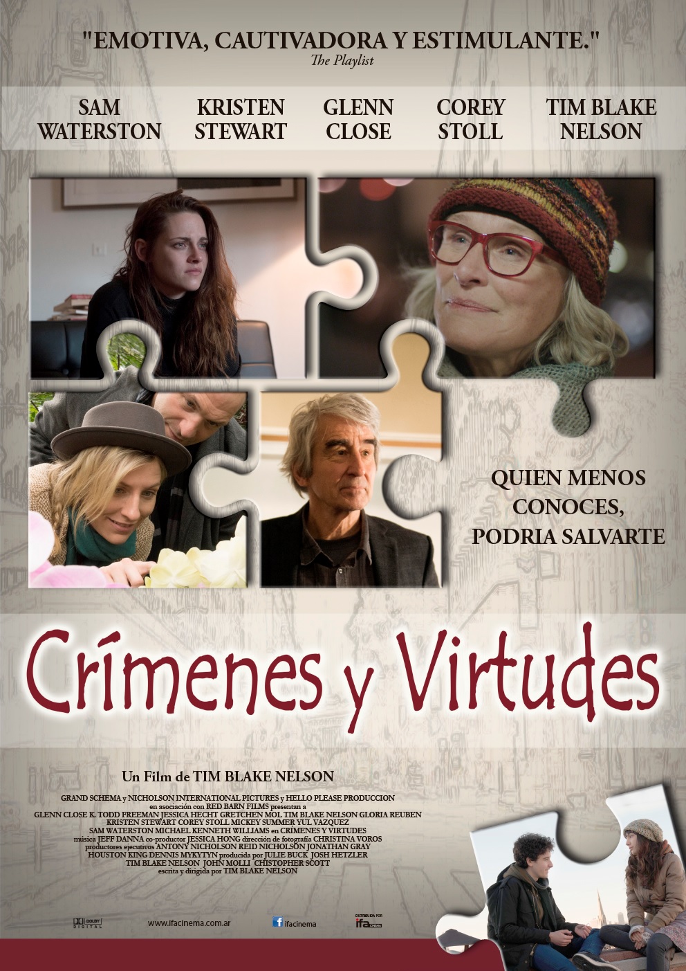 Anestesia viene del griego. Quiere decir insensibilidad. Ver Crímenes y virtudes es un buen paso para empezar a romper esa inercia y volver a la vida que vale la pena vivir. Por ejemplo, arreglar fecha y hora para ir a cenar con mis dos mejores amigos, a quienes hace casi un año que no les dedico el tiempo que nos merecemos. Fernando Ariel García