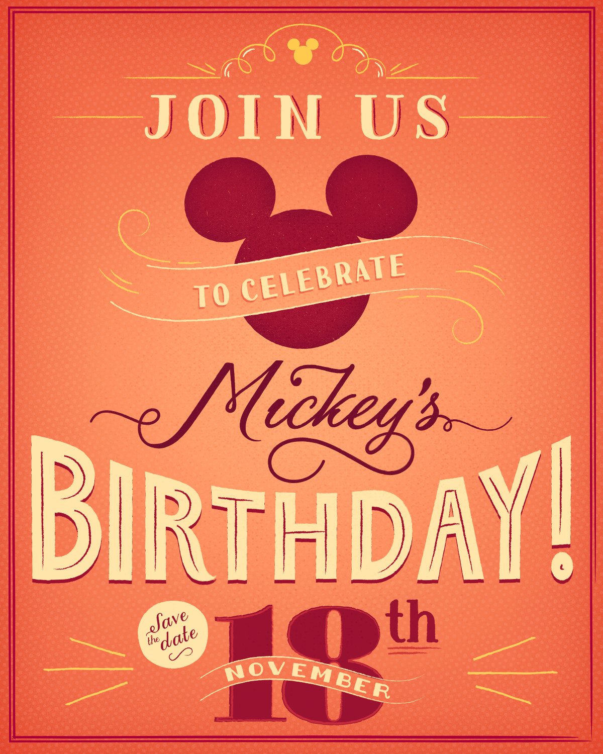El cumpleaños de Mickey se celebra en honor al estreno de su primera película en cine, Steamboat Willie, el 18 de noviembre de 1928, en el Colony Theatre de la ciudad de Nueva York. Desde entonces, el ratón ha protagonizado más de 100 dibujos animados.