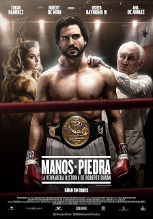 (Información de prensa) La verdadera historia de Roberto Durán. Manos de Piedra (Hands of Stone, EE.UU., 2016) se estrena en la Argentina el 3 de noviembre. Dirigida por el venezolano Jonathan Jakubowicz, la biopic del boxeador Roberto Mano de Piedra Durán está protagonizada por Édgar Ramírez (Roberto Durán), Robert De Niro (Ray Arcel), Usher Raymond IV (Sugar Ray Leonard) y Jurnee Smollett-Bell (Juanita Leonard), contando con participaciones especiales de Ellen Barkin, Rubén Blades y John Turturro, entre otros.