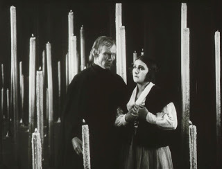 Las tres luces (Der müde Tod, 1921), de Fritz Lang: Una pareja de enamorados llega a un pueblo donde conocen a un hombre misterioso. El novio desaparece junto a él, y la novia lo busca desesperadamente, hasta que descubre que este misterioso hombre es la Muerte, que se ha llevado a su prometido. Ella le implora que se lo devuelva. Entonces, es conducida a una sala llena de velas: son las luces que simbolizan las vidas de las personas y se apagan tan pronto termina una de ellas.