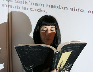 “Darwin secuestra a tres fueguinos, les enseña inglés y les pregunta si matan y comen gente…”. Así comienza Nostalgia..., una investigación performática sobre la cultura Ona –o Selk’nam- que cuestiona a su vez la construcción del relato histórico y su grado de ficcionalidad. Los Selk’nam u Onas son una cultura originaria de Tierra del Fuego. Antiguos cazadores y recolectores, luego de la colonización española y británica del siglo XVIII fueron desplazados a misiones católicas, usados como mano de obra esclava y/o exterminados. Aquellos Selk’nam que habían sido exhibidos en zoológicos humanos en la Europa del siglo XIX; hoy son el contenido de exhibición en Bienales de Arte por ser pueblos extintos y sus descendientes continúan el reclamo por el territorio del que fueron despojados. Actualmente, en Tierra del Fuego se encuentran las cadenas de ensamblaje de electrodomésticos del país y las misiones salesianas que alojaron a los Selk’nam en el siglo XX devinieron escuelas agro-técnicas.