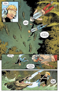 Esta primera entrega de Future Quest resultó ser exactamente como la pensaba, tal vez porque yo sea el lector al que apunta DC con estas reversiones historietísticas de los clásicos animados de H&B (Scooby-Doo, Los Picapiedras y Los Autos Locos están al caer), en este caso en particular el universo aventurero-superheroico de Jonny Quest, el Fantasma del Espacio, Birdman y el Trío Galaxia, los Defensores Interplanetarios, Frankenstein Jr. y los Imposibles, Mightor, Shazzan y algún otro que se me escapa.