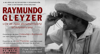 (Información de prensa) A 40 años de su secuestro y asesinato por la dictadura cívico-militar, Raymundo Gleyzer vive en cada cineasta latinoamericano. Documentalistas unidos y en lucha para mantener viva la memoria y para garantizar el futuro del cine documental argentino invitan a la proyección homenaje a realizarse este viernes 27 de mayo a las 19:00 horas, en el Cine Gaumont (Av. Rivadavia 1635 - Ciudad Autónoma de Buenos Aires).