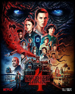 Stranger Things - Temporada 4 (vol. 1). Directores: Los hermanos Duffer, Shawn Levy, Ninród Antal. Protagonistas:Winona Ryder, David Harbour, Finn Wolfhard, Millie Bobby Brown, Gaten Matarazzo, Caleb McLaughlin, Noah Schnapp, Sadie Sink, Natalia Dyer, Charlie Heaton, Joe Keery, Maya Hawke, Priah Ferguson, Cara Buono, Brett Gelman, Paul Reiser, Eduardo Franco, Joseph Quinn, Joe Chrest, Matthew Modine, Tom Wlaschiha y Sherman Augustus, entre otros. Participación especial de Robert Englund. Guionistas: Los hermanos Duffer, Caitlin Schneiderhan, Paul Dichter, Kate Trefry, Curtis Gwinn. 21 Laps Entertainment / Monkey Massacre. EE.UU., 2022. Estreno en la Argentina: Disponible en Netflix desde el 27 de mayo de 2022.