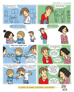 Lo más interesante de la historieta es que los chicos actúan, piensan, hablan y sienten como chicos, en un universo social que replica las actividades y los intereses de los chicos, con los ritmos que llevan (o deberían llevar) los chicos en la vida real. Dejando las reflexiones sociales o las críticas políticas para lo que pasa fuera de las páginas semanales, cada una de las tiras se alimenta con la capacidad de fantaseo que tienen los personajes. Y (mucho menos de lo que me gustaría ver, tengo que admitirlo) con la proyección adolescente de esos niños, tan inocentones como queribles.