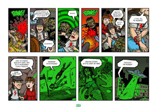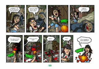 Y dejé (adrede) para el final uno de los logros más notables de la historieta, que tiene que ver con la estructura utilizada por el autor. Una larga aventura, serializada mediante el formato de tira diaria autoconclusiva, cada una de ellas con remate humorístico incorporado. Una decisión consciente, de muy difícil resolución técnica, que Amaya sortea con creces, demostrando un dominio del medio y el lenguaje ideal para un desafío creativo de (chiste rápido y fácil) mayor envergadura. Fernando Ariel García