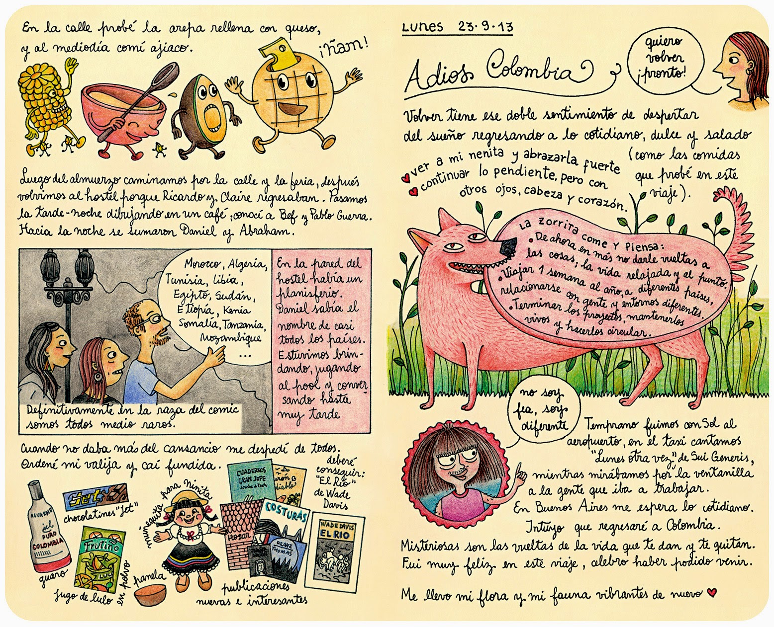 Porque Mi cuaderno de dibujos y viñetas es eso que Delius (nombre artístico de María Delia Lozupone) afirma desde el título. Una Moleskine hecha libro, respetando el tamaño real de la original y sus fetichistas puntas redondeadas. Un cuaderno de notas como el que supieron utilizar Bruce Chatwin y Neil Gaiman (y Hemingway y Picasso y…), que compila y comparte dibujos sueltos, cortas historietas con un particular sentido del humor para recuperar tiempos y músicas pasados; y un jugoso diario de viajes ilustrado que la dibujante y diseñadora dejó fluir entre diciembre de 2008 y octubre de 2014.