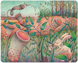 Alien Triste. Hotel de las Ideas. Alien Triste no tiene plata, tiene problemas sociales, es celoso y resentido. En pocas palabras, lleva una vida que pocos envidiarían. Teniendo en cuenta estas características, se podría pensar que no estamos ante un personaje querible. Pero nada más alejado de la realidad: A través de la ironía y el cinismo, el humor (negro) de las tiras de Alien Triste penetra inesperadamente en los lectores, como un reflejo de todo lo que no nos animamos a decir, pero que no dejamos de pensar. A través de la máscara de la tira autobiográfica (tan ficticia como la del mismo personaje), Alien Triste, con su rostro en apariencia inexpresivo, exhibe un mundo original, desbordante de imaginería propia, que visibiliza muchas de las cosas que preferimos ocultar. Dice Podetti en el prólogo al libro: “El Alien Triste es la quintaesencia del Artista. Además de dar lástima, se la pasa pensando una y otra vez en sus nimias obsesiones, perdiendo el tiempo en Internet o escuchando heavy metal, jactándose de su inutilidad total para las cosas prácticas, rumiando su bronca por las odiosas comparaciones (Dibujás parecido a Moebius) o sintiéndose amenazado por otros de su especie". Por Pedro Mancini.