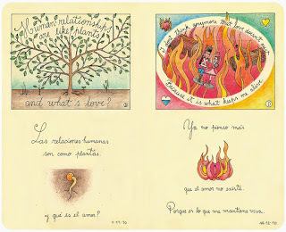 No tiene nada que ver con la película de Spike Jonze, pero la lectura de Mi cuaderno de dibujos y viñetas me hizo recuperar la misma placentera sensación de voyeurismo intelectual que me produjo (la idea más que el filme) ¿Quieres ser John Malkovich? Esa posibilidad de meterme directamente dentro de la cabeza de un ser emocionalmente pensante, justo en el momento en que se le enciende la lamparita de la creación, ese fuego sagrado que baja de las neuronas hasta los dedos (pasando por el corazón, claro), antes de derramarse libremente por un papel de naturaleza privada, nacido (creo yo) para no ser compartido hasta el instante en que la autora, veterana integrante del colectivo El Tripero, decidió hacerlo público.