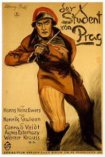 El estudiante de Praga (Der Student von Prag, 1913), de Hanns Heinz Ewers: Corre el año 1820 en Praga. El estudiante Balduin salva a la condesa Margit de morir ahogada y se enamora de ella. Para mejorar su estatus social y participar en la vida aristocrática, acepta un pacto con el anciano usurero Scapinelli, a quien le vende la imagen de su reflejo en el espejo. Cuando su “reflejo” comienza a intervenir en su vida, Balduin se convierte en la víctima de su propio accionar macabro. Con Paul Wegener, Lyda Salmonova, Grete Berger, John Gottowt, Lothar Koerner y Fritz Weidemann.