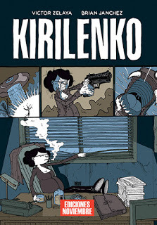 Kirilenko. Ediciones Noviembre. Olga Kirilenko, investigadora privada de actividad alienígena, pensaba que no podía caer más bajo cuando su pasado volvió a recordarle que todo podía empeorar. Contrabandistas de mascostas, terroristas neptunianos y un monarca que puede hacer desaparecer a toda la tierra por puro capricho, son algunos de los desafíos que tiene que enfrentar Kirilenko... si sobrevive. Por Brian Jánchez (guión) y Víctor Zelaya (dibujos).