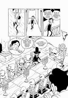 El mayor mérito de los autores, me parece, es el de haber asumido responsablemente la libertad creativa de hibridar lo mejor de varios distintos mundos: La tragedia shakesperiana, con sus intrigas románticas y sus conjuras palaciegas; el costumbrismo discepoliano, capaz de articular pasos cómicos de vodevil con una concepción taciturna de la existencia; el ritmo desaforado del pulp aplicado en el contexto político del thriller setentista; y la exageración humorística de la caricatura que da identidad expositiva a la línea clara francobelga, presente en el trazo de Hansz.