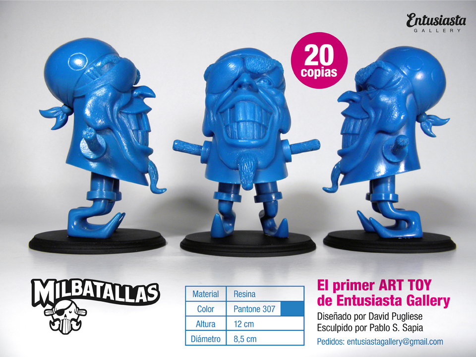 (Información de prensa) Entusiasta Gallery presenta El pirata Milbatallas, su primer art toy coleccionable, diseñado por el dibujante David Pugliese. La figura ha sido esculpida por Pablo Sapia y esta primera edición cuenta con 20 únicos ejemplares realizados en resina.