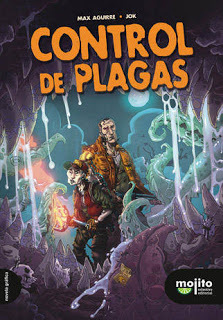 Voy a decirlo de arranque. Control de plagas es una de las historietas más entretenida y lograda de los últimos tiempos. Pero hay algo en el libro del Colectivo Editorial Mojito que no me termina de cerrar, quizá porque el formato de edición elegido diluyó el impacto emocional que Max Aguirre y Jok venían construyendo meticulosamente; borroneando un poco la compacta integralidad alcanzada en la primera de las tres partes en que me atrevo a dividir el todo.