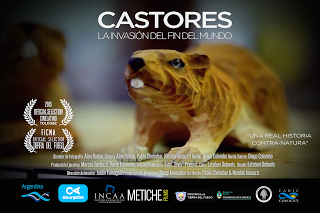 Castores. La invasión del fin del mundo es un documental que narra uno de los intentos mas ingenuos del hombre por querer alterar los ecosistemas en su beneficio. En 1940, veinte castores canadienses fueron introducidos en la isla de Tierra del Fuego, al sur de la Argentina y Chile, para el desarrollo de la industria peletera. El proyecto fallo y el castor, sin depredadores naturales, rápidamente se expandió como plaga por otras islas de la región, alcanzando el numero de 150 mil individuos, causando la destrucción masiva de arboles y especies locales, amenazando todos los bosques y lagos de la Patagonia.